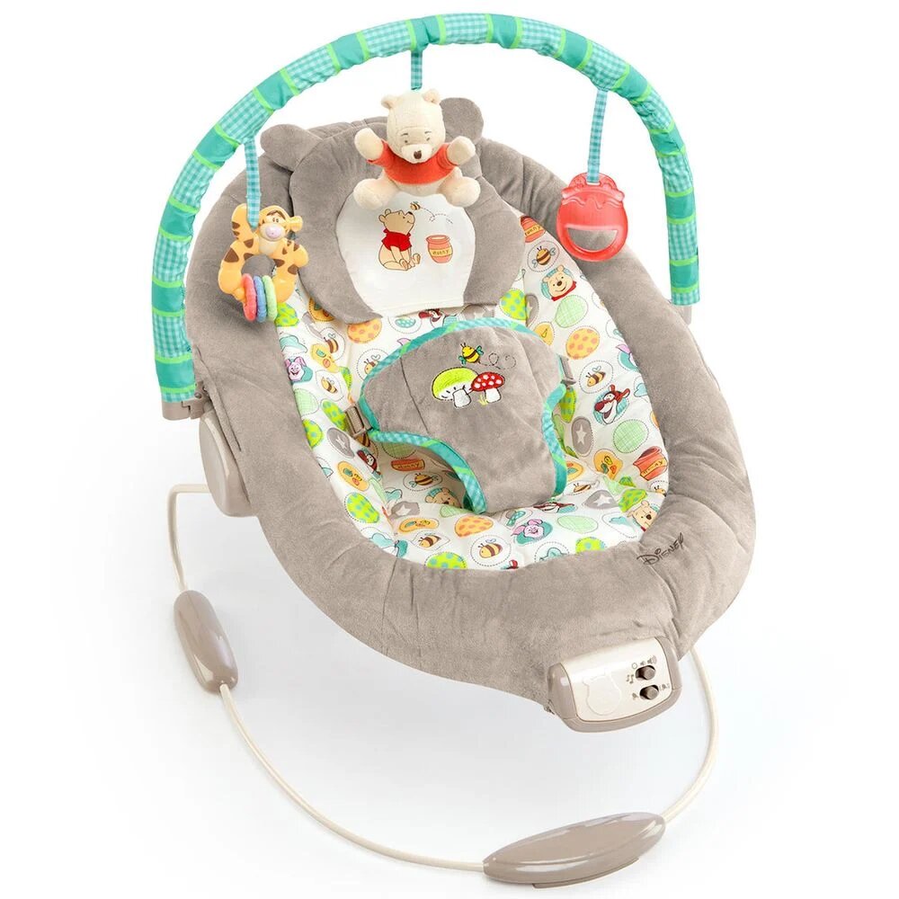 Шезлонг Bright Starts Winnie The Pooh Dots & Hunny Pots з режимом вібрації та звуковими ефектами для дітей від народження і вагою до 9 кг.
