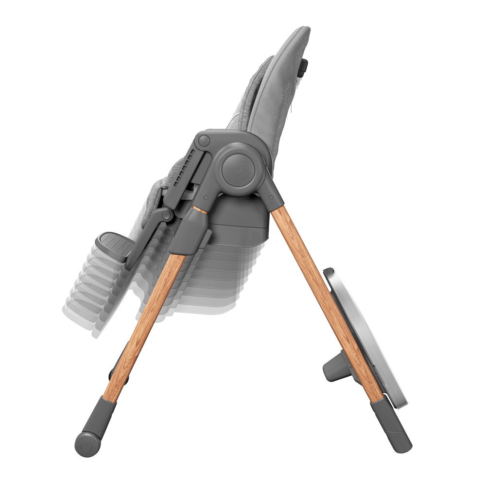 Високоякісні матеріали і шість різних варіантів сидіння виразно говорять про стильний високий стільчик. З Minla ваша дитина може брати участь за сімейним столом з самого народження. Супер м'які і зручні сидіння підтримують малюка оптимально. Протягом перших декількох місяців стільчик Maxi-Cosi Minla можна використовувати в п'яти різних положеннях з відкидною спинкою, а також з підносом, який можна регулювати в 4 рівнях. Регулювання однією рукою лотка, що складається з двох частин, полегшує вхід і вихід вашої дитини. Коли він не використовується, ви можете легко зберігати піднос на спинці стільця.