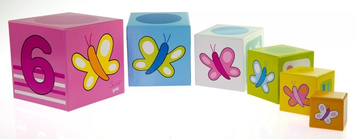Кубики Вчимося рахувати Goki зроблені з міцного картону, покритого кольоровими фарбами на водній основі. Кубики дозволять тренувати моторику і спритність. Грати ними можна різними способами: будуючи вежу від великого до меншого або складаючи один кубик на інший від малого до великого.