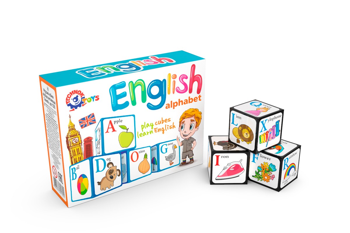 Набір Technok складається з 12 кубиків із літерами англійського алфавіту та малюнками. На кожній грані кубика - буква та зображення предмета, назва якого починається на цю букву.