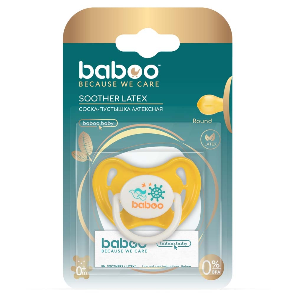 Латексна соска-пустушка BABOO круглої форми, призначена для дітей віком від 0 місяців.