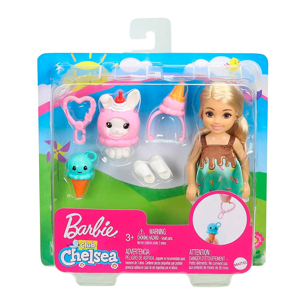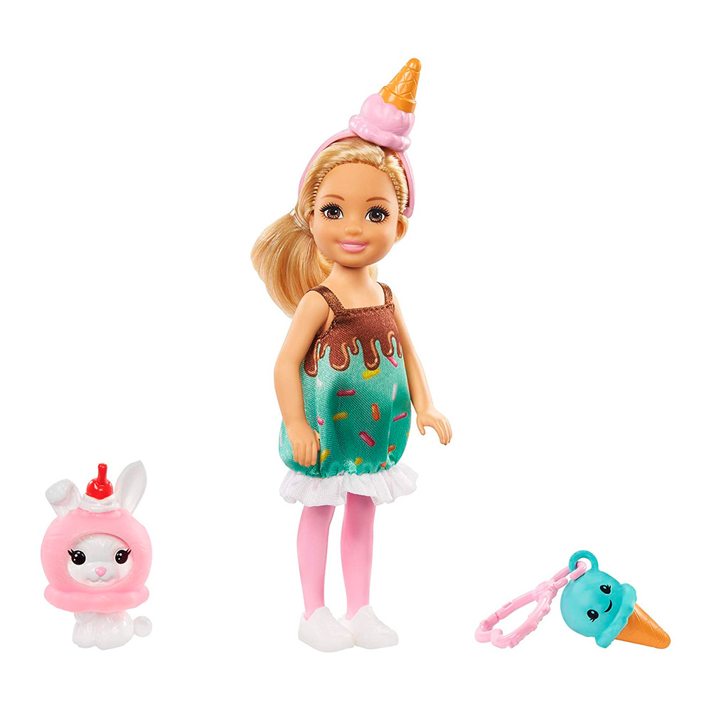 • Лялька Barbie Club Chelsea Казкове вбрання морозиво стане чудовою подружкою для вашої маленької красуні! Лялька сподобається дівчаткам віком від 3-х до 7-ми років. Ляльку легко прикріпити до рюкзачка і носити з собою — для цього є милий брелок. Чудове зайченя у костюмі морозива — найкращий друг ляльки. Гра з набором дасть змогу дітям розвинути дрібну моторику, фантазію, емоційне сприйняття.