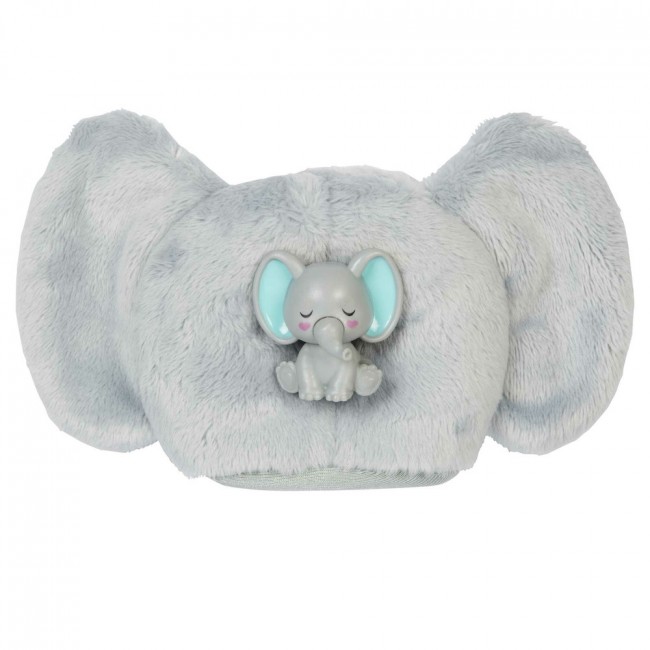 Розпакуйте цей набір, щоб знайти чарівне плюшеве слоненя сіро-бірюзового кольору. Зніміть голову костюма, і ви побачите темношкіру ляльку Barbie з довгим чорним волоссям з кольоровими вставками. Відкрийте 4 пакетики з сюрпризами, що йдуть у комплекті, аби знайти всередині додатковий одяг і аксесуари: милу спідницю, пару взуття, губку-гребінець, сонцезахисні окуляри і мініслоненя, маленького улюбленця ляльки.