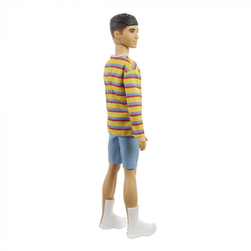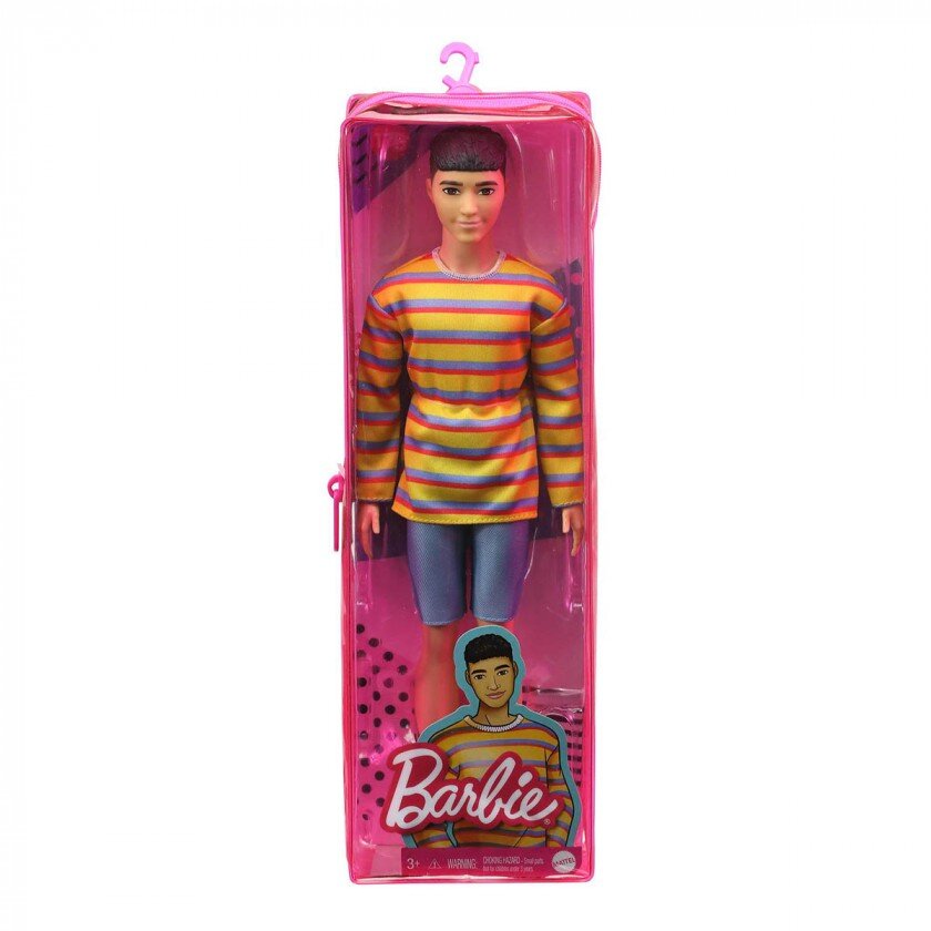 Усі ляльки відрізняються статурою, кольором очей, волосся, шкіри, а також стильними нарядами. Ляльки розроблені для відображення світу, в якому діти живуть сьогодні. Діти можуть колекціонувати їх для нескінченних сюжетів гри, відтворюючи власний стиль і відкриваючи для себе світ Barbie! Лялька Barbie Кен Модник в смугастому джемпері 29 см виглядає дуже стильно! Експериментуй, поєднуючи різні стилі, і відкривай нові можливості для творчого самовираження! Збери усю колекцію модників! У комплекті: лялька Кен з темним волоссям із стрижкою бокс, який одягнений в смугастий джемпер жовтого, червоного і блакитного кольору, шорти під джинсу і білі кросівки з імітацією шкарпеток.
