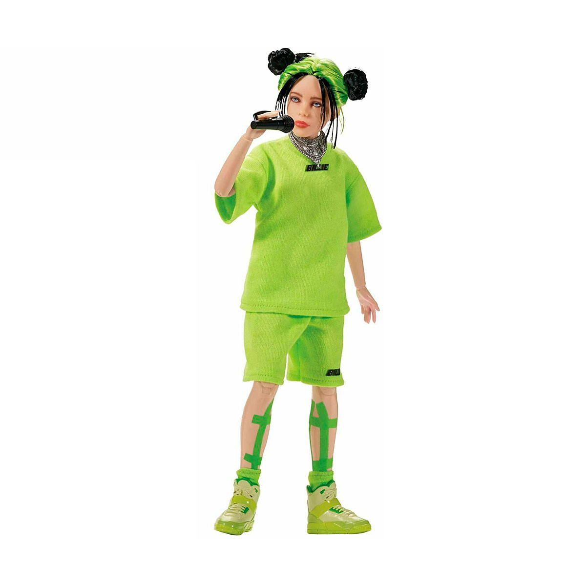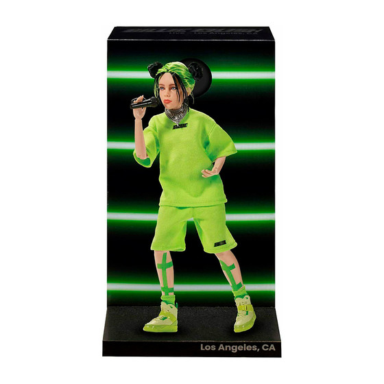- лялька добре деталізована та одягнена точнісінько, як Біллі Айліш під час одного зі своїх виступів у Лос-Анджелесі.
