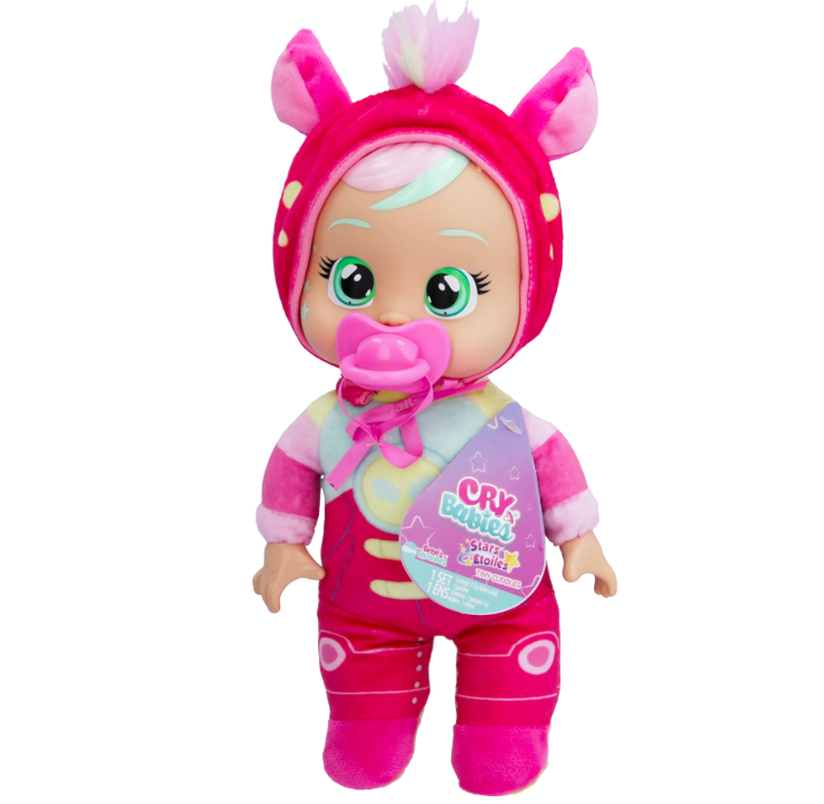 Cry babies — це серія ляльок-немовлят, кожна з яких має свій неповторний вигляд та характер. Вони плачуть справжніми сльозами. Заповніть резервуар водою (в голові ляльки), а потім натисніть на голову ляльки, щоб вона почала плакати.