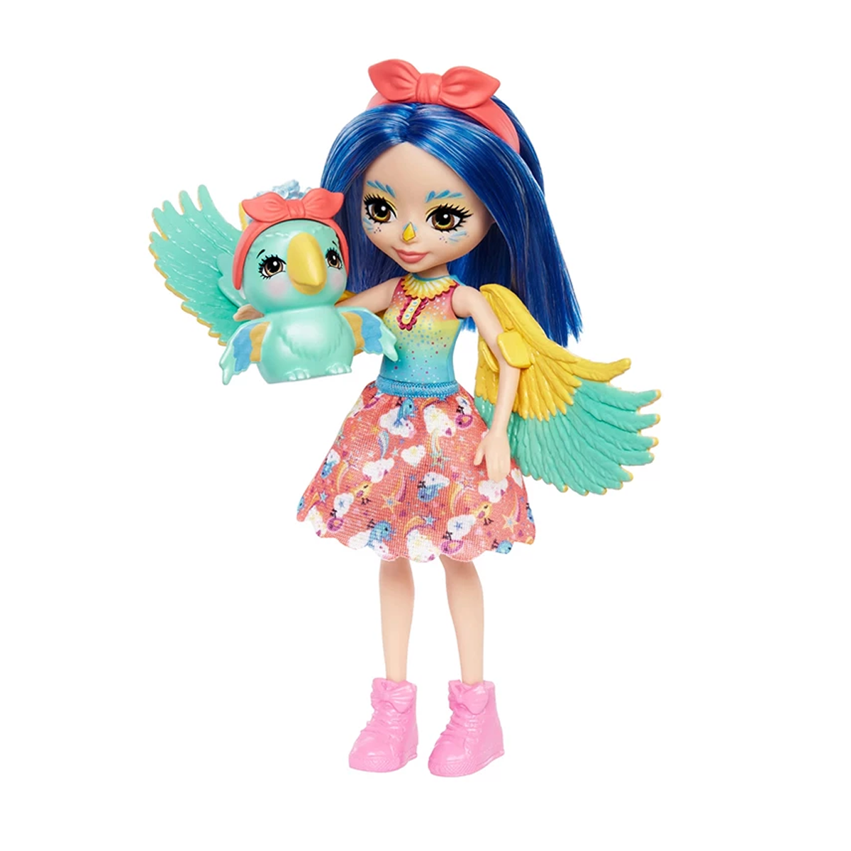 Папужка Пріта (15 см) з серії Міські хвостики має маленьку подругу Флаттер, яка завжди пурхає поряд. Спідничка, пов’язка й черевички Папужки Пріти знімаються, тож із нею можна також гратися в перевдягання. Крила прикріпляються до рук ляльки, тож діти можуть допомогти їй розправити своє розкішне "пір’ячко". У неї та її подружки Флаттер є чарівні аксесуари для творчої гри.