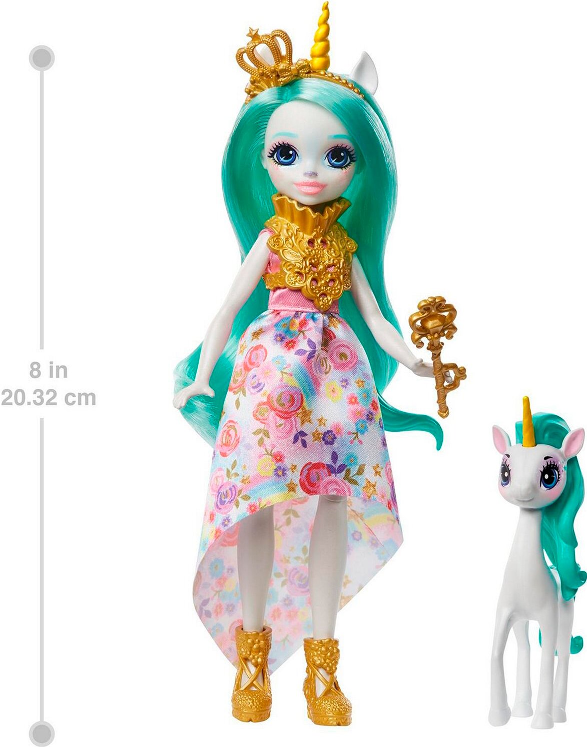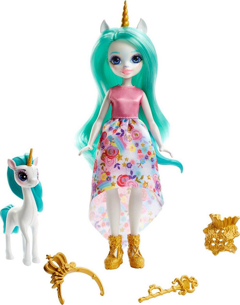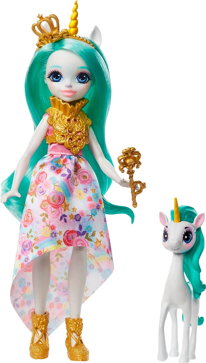 Зустрічайте Enchantimals — компанію чарівних дівчаток, що мають особливий зв'язок зі своїми найкращими друзями-звірятами. Знайомтеся з Її Величністю Єдинорогом Юніті і її найкращою подружкою Степпер.Велична лялька Єдиноріг Юніті одягнена у вишукане плаття й має королівські аксесуари, як-от корона, скіпетр і намисто, яке знімається й також підходить для Степпер. Лялька заввишки 20.3 см має артикуляцію в колінах. Завжди поруч із нею єдиноріг Степпер готова сяяти під час будь-якої королівської події й обожнює чарівні пригоди. Так схожі між собою, Єдиноріг Юніті та Степпер надихають дитину мріяти, особливо про польоти над островом Королевичів.