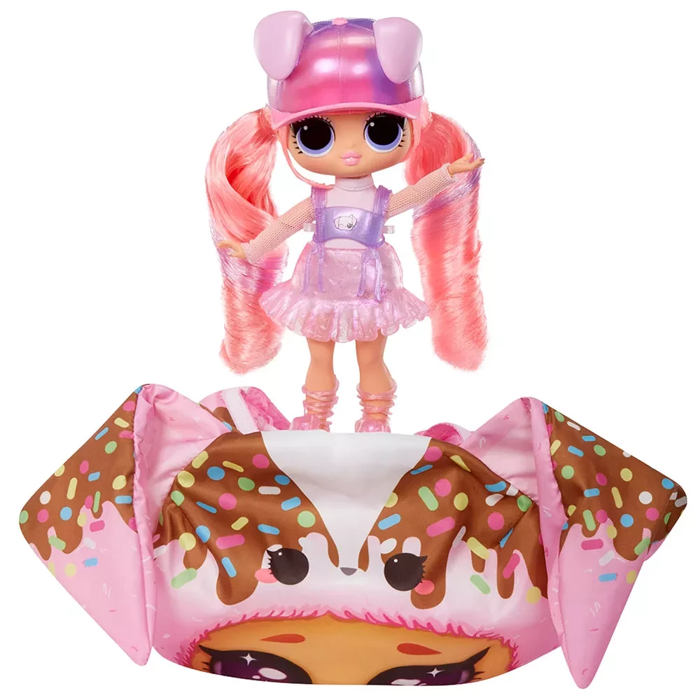 Сюрприз на цьому не закінчується! Розстебніть липучку на потилиці песика, щоб знайти чудову ляльку Алі Денс, заховану всередині!