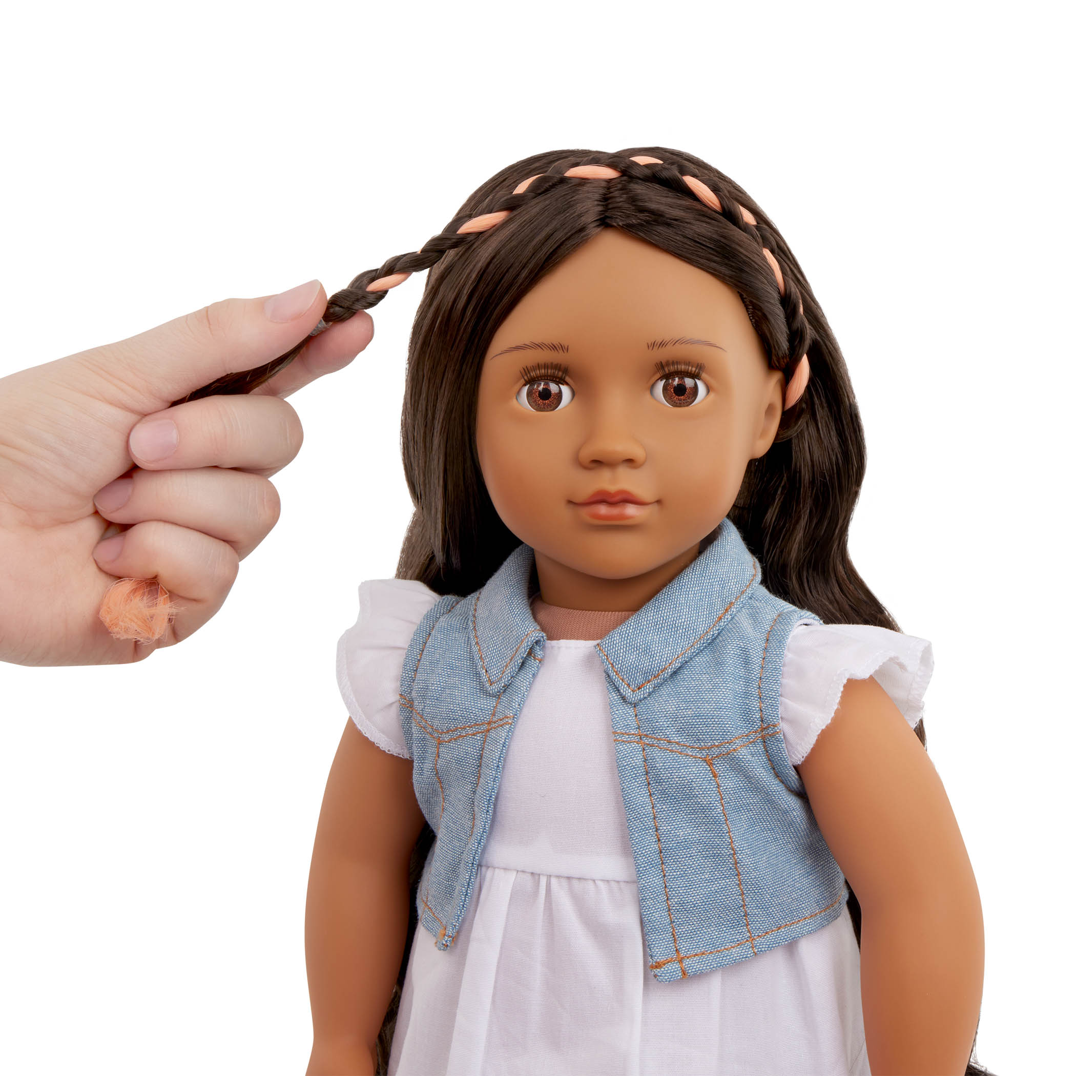 Відкрийте світ фантазії та стилю разом із Перлою від Our Generation! Ця чарівна 46-сантиметрова лялька має надзвичайно довге темно-каштанове волосся, яке можна розчісувати, заплітати та укладати в безліч модних зачісок. А головна особливість — її косу можна подовжити або вкоротити одним натисканням кнопки!