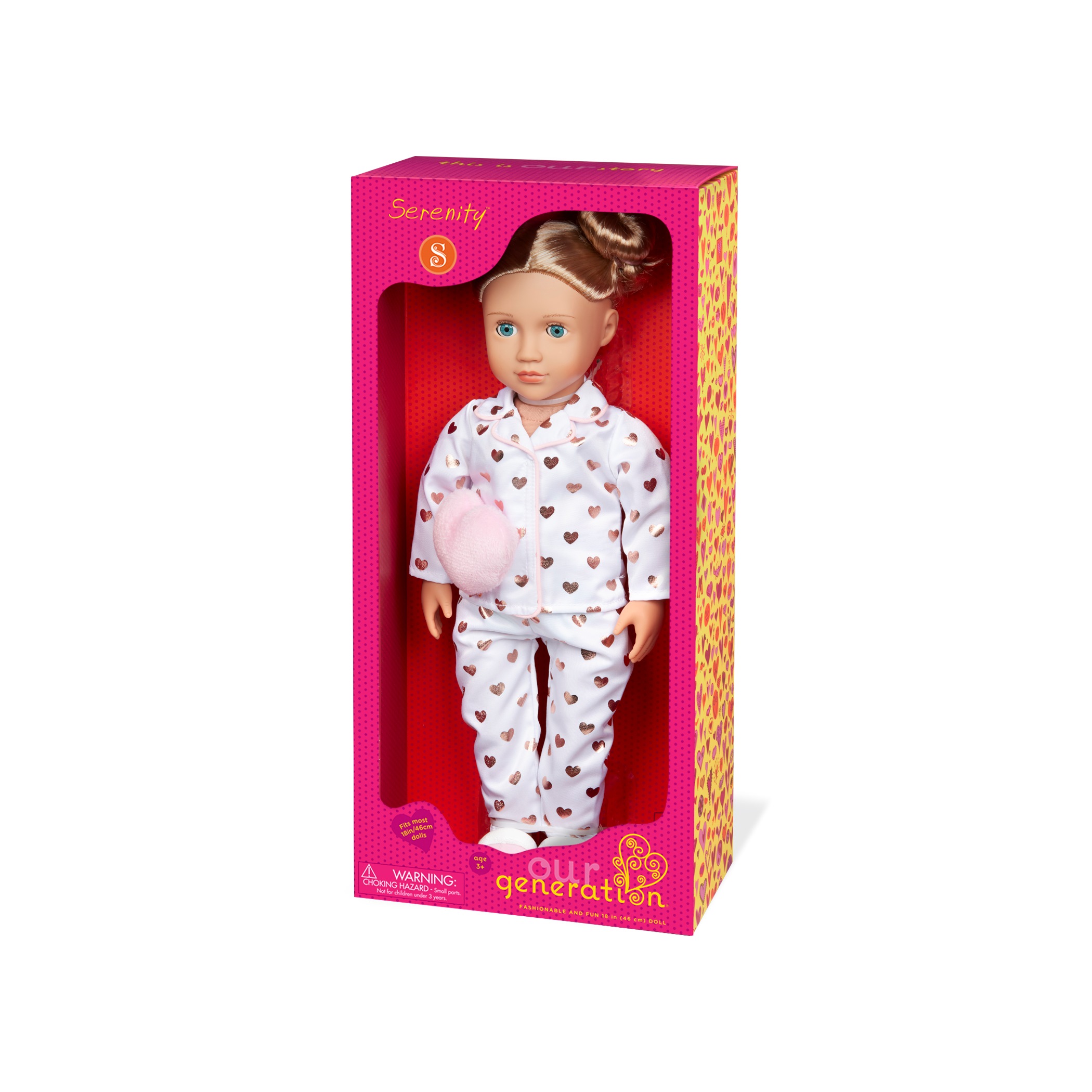 • Приготуйтесь до наймилішої піжамної вечірки разом із лялькою Our Generation Сереніті! Ця чарівна 46-см блондинка створена для затишних обіймів, солодких снів і веселих пригод з ночівлею. У Сереніті довге світле волосся, яке легко розчісувати та вкладати у стильні зачіски, а її яскраво-блакитні очі закриваються, коли настає час відпочинку.