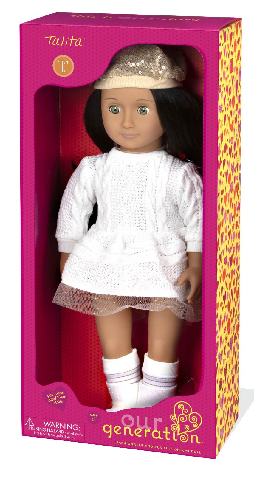 Таліта – це неймовірно стильна й елегантна лялька Our Generation, яка захоплює своєю витонченістю та простотою одночасно. Вона стане найкращою подружкою для будь-якої дівчинки. Таліта має красиве довге чорняве волосся, яке чудово гармонує з її зеленими очима. Біла сукня у поєднанні з елегантним взуттям та капелюшком підкреслюють її аристократичність та витонченість. Лялька Таліта з серії Our Generation – це справжня леді, яка має гарне виховання та чудовий характер.