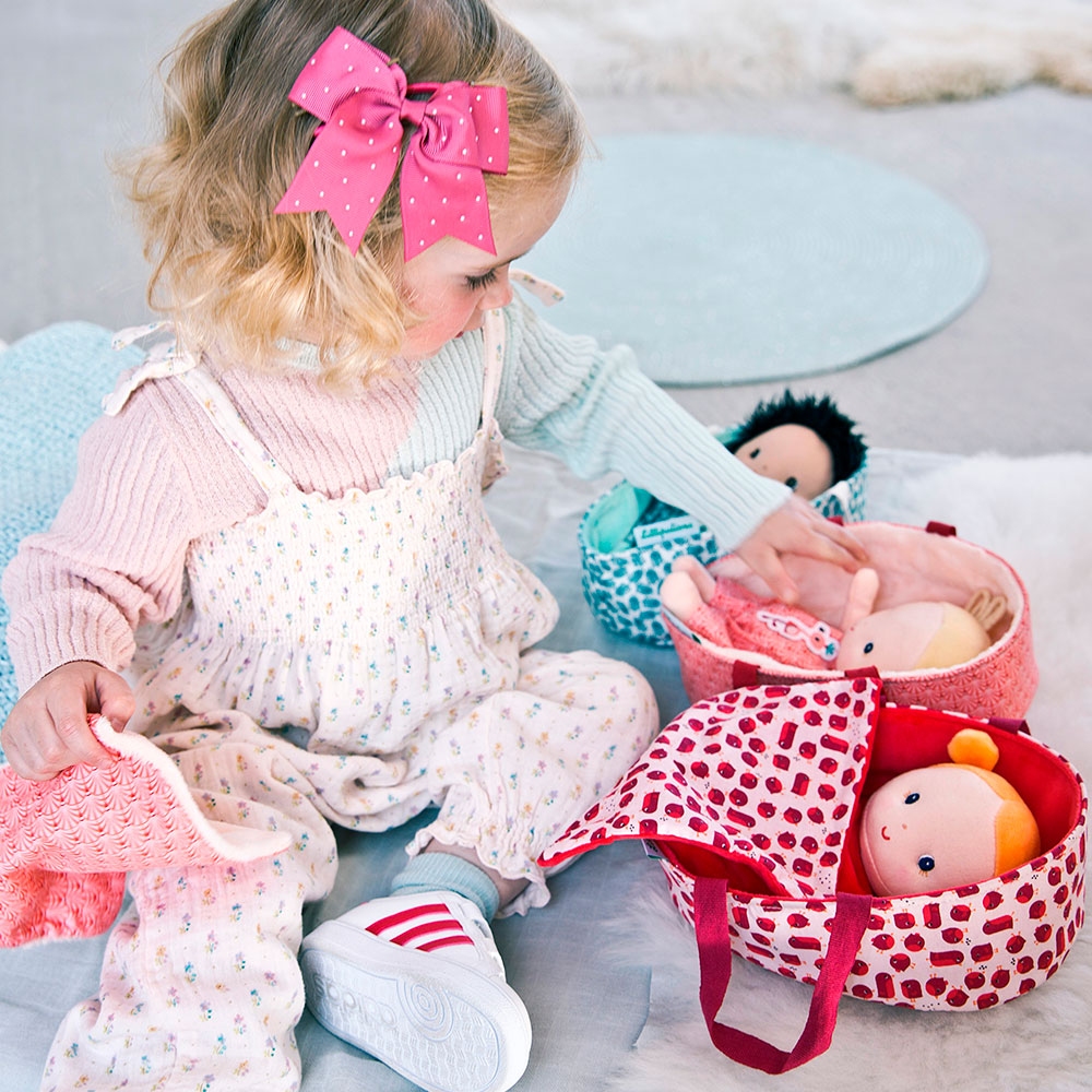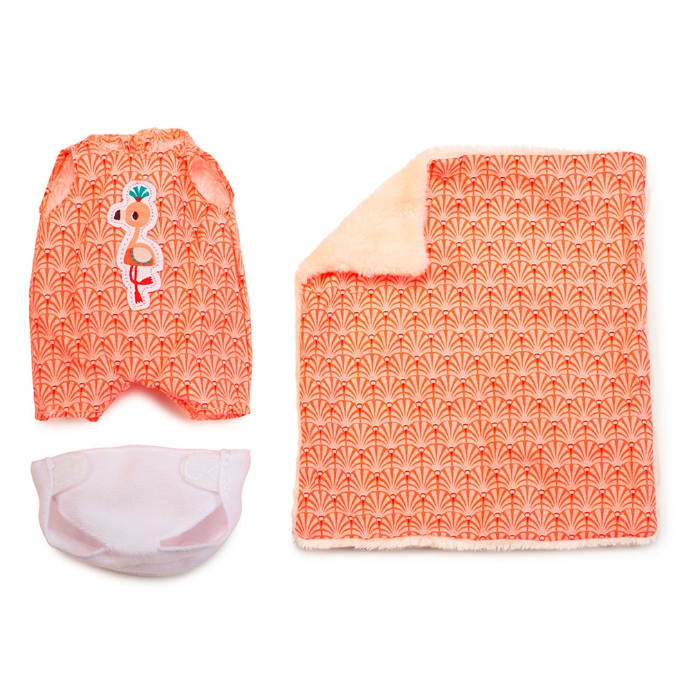 - У набір входить: Лялька, підгузник та піжамка на липучках, переносне ліжечко-сумка та ковдра.