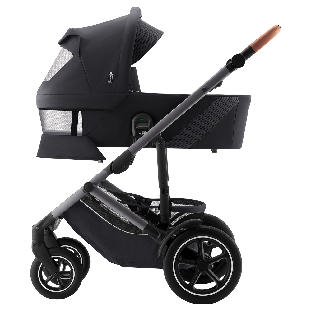 Малюк заснув? Завдяки кнопкам запам'ятовування, ви можете однією рукою від'єднати спальний блок від шасі разом зі сплячим малюком. Коли вам потрібно буде знову встановити спальний блок, зручні індикатори покажуть, що він встановлений правильно і надійно закріплений. Вага спального блоку SMILE 5Z всього 3,7 кг, а завдяки інноваційній конструкції з ним так легко поводитися!