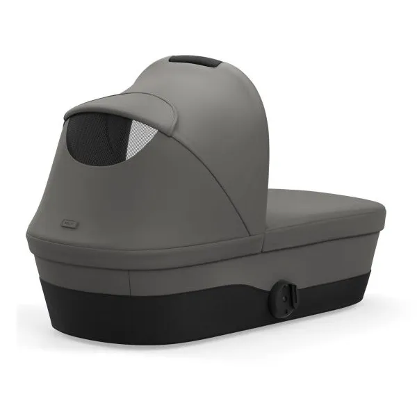 Люлька Cybex Melio має ручку для перенесення, а також вбудовану в капюшон москітну сітку для провітрювання. Усередині люльки м'який, досить високий матрацик, що забезпечує правильне положення дитини. Внутрішня оббивка коляски, знімна, і її можна прати при необхідності. Капюшон має додатковий сонцезахисний козирок із рівнем захисту UPF50+.