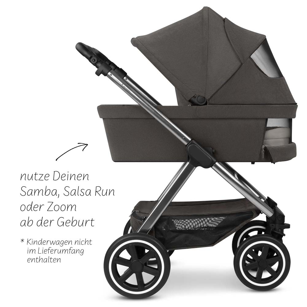 За допомогою наших люльок ви можете перетворити свою подвійну коляску Samba 2, Salsa 5 Run або Zoom 2 на прогулянкову коляску для перших прогулянок і використовувати її для своєї дитини з самого народження. Принцип дуже простий. Ви знімаєте сидіння і встановлюєте люльку на раму коляски.