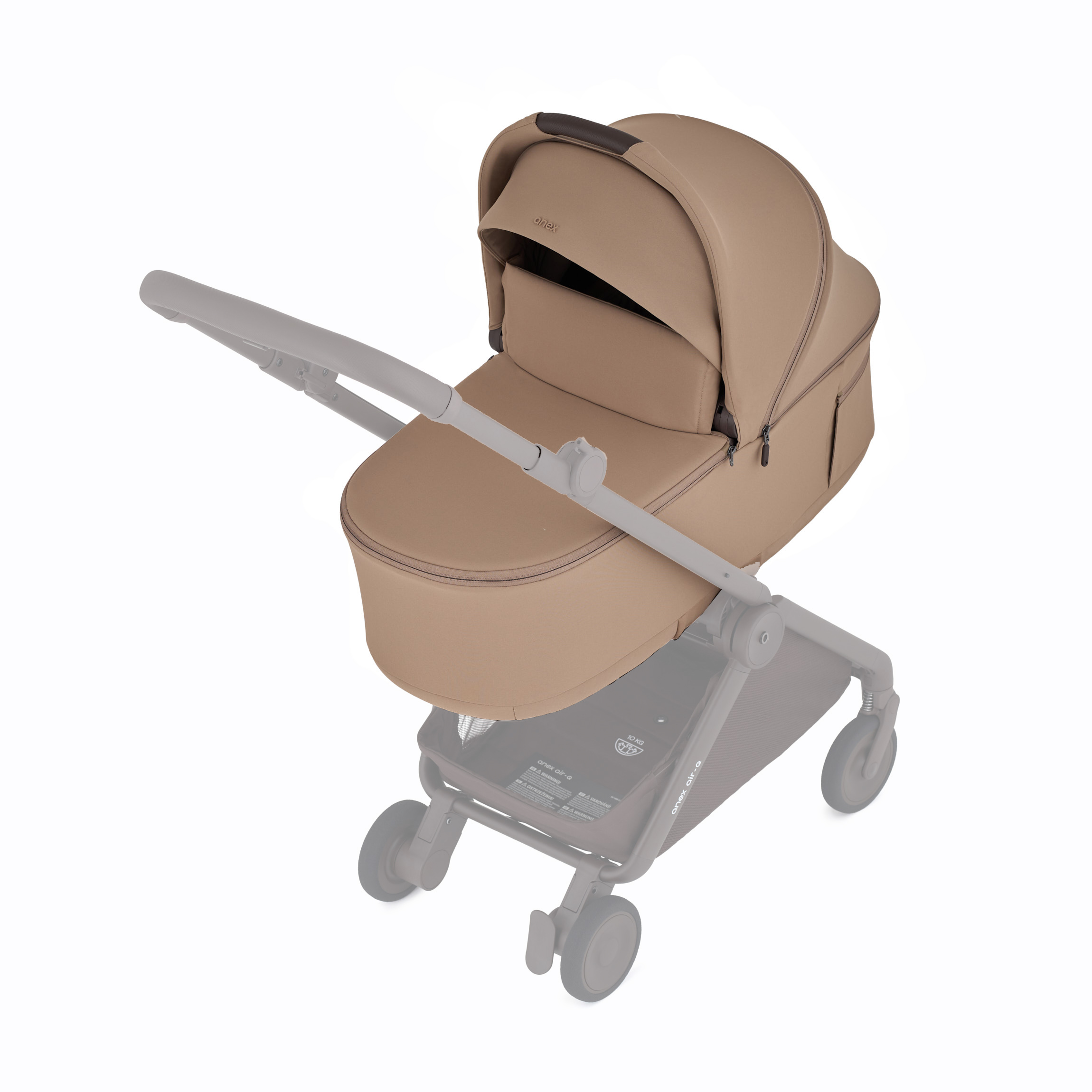 У конфігурації з люлькою Air-Q створює затишний і безпечний простір для малюка з перших днів життя. Люлька розроблена для зручних подорожей і складається разом із коляскою в компактний розмір ручної поклажі.