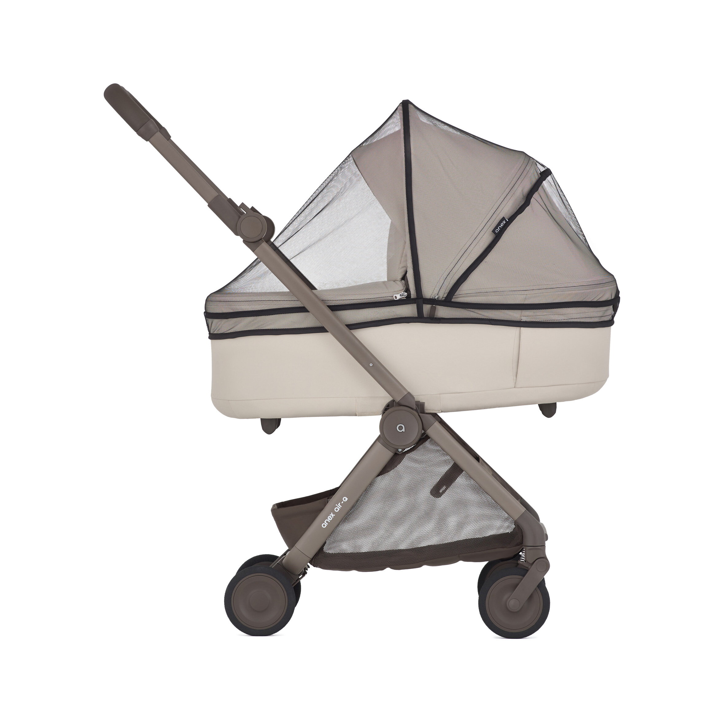 У конфігурації з люлькою Air-Q створює затишний і безпечний простір для малюка з перших днів життя. Люлька розроблена для зручних подорожей і складається разом із коляскою в компактний розмір ручної поклажі.