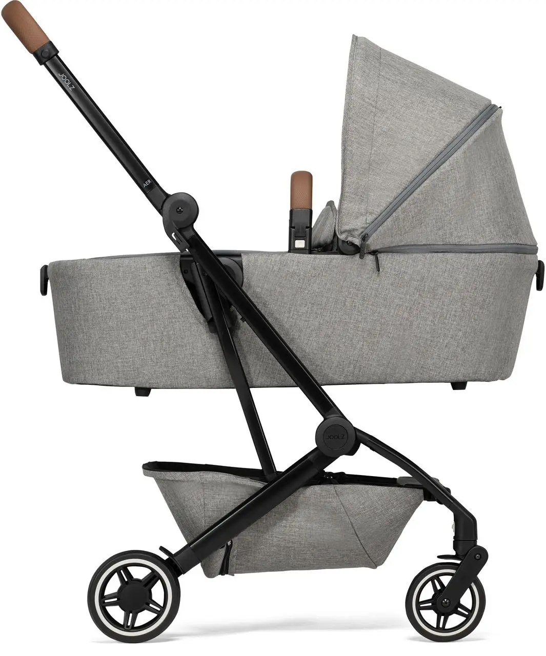Модель удосконалена за рахунок покращення системи вентиляції, представленої однією із секцій безшумного каптура. Люлька Joolz Aer+ належить до стильної колекції компанії. Представлена модель використовується доти, доки дитина не навчиться сидіти самостійно. У комплектацію входять каптур і матрацик. Зняти люльку і поставити її на шасі можна лише однією рукою, але при цьому вона фіксується на шасі дуже надійно. Блок встановлюється на оптимальній висоті, яка зручна батькам та безпечна для дитини. Люлька встановлюється в будь-якому зручному для вас напрямку. Люлька коляски Joolz Aer+ має тверду основу. Її внутрішні поверхні виконані гіпоалергенним натуральним матеріалом, що безпечний навіть для чутливих діток. Зовнішній текстиль не промокає і довго зберігає первозданну яскравість фарб.