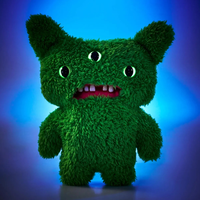 М'яка іграшка Fuggler FuggGlow Сяючо-зелений Вонюх - це нічний лиходій, який спить весь день і створює хаос всю ніч. Він ховається в тіні, чекаючи, щоб вистрілити мокротою в нічого не підозрюючих жертв. На щастя для вас, його можна помітити здалеку, тож слідкуйте за його сяючими очима, ротом чи одягом.