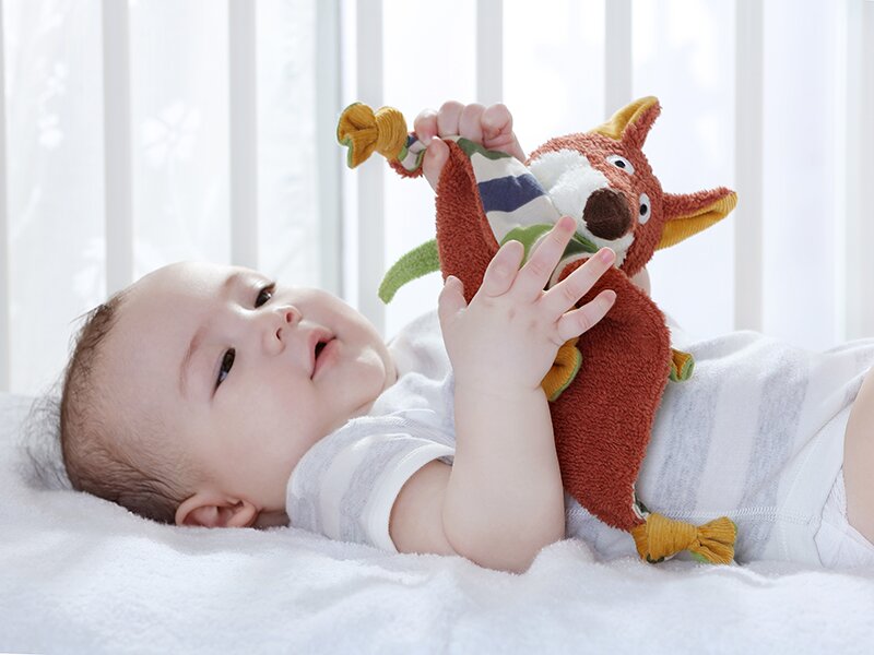 Багатофункціональна м’яка іграшка-комфортер призначення для немовлят із самого народження. Це ідеальна іграшка для засинання, а також для перших ігор діточок. Іграшка спонукатиме дітей до рухів і в такий спосіб сприятиме покращенню дрібної моторики у дітей. М’якеньке лисенятко приємне на дотик: дуже ніжне, комфортне. Вироблене із приємного поліестеру плюшу та бавовни.