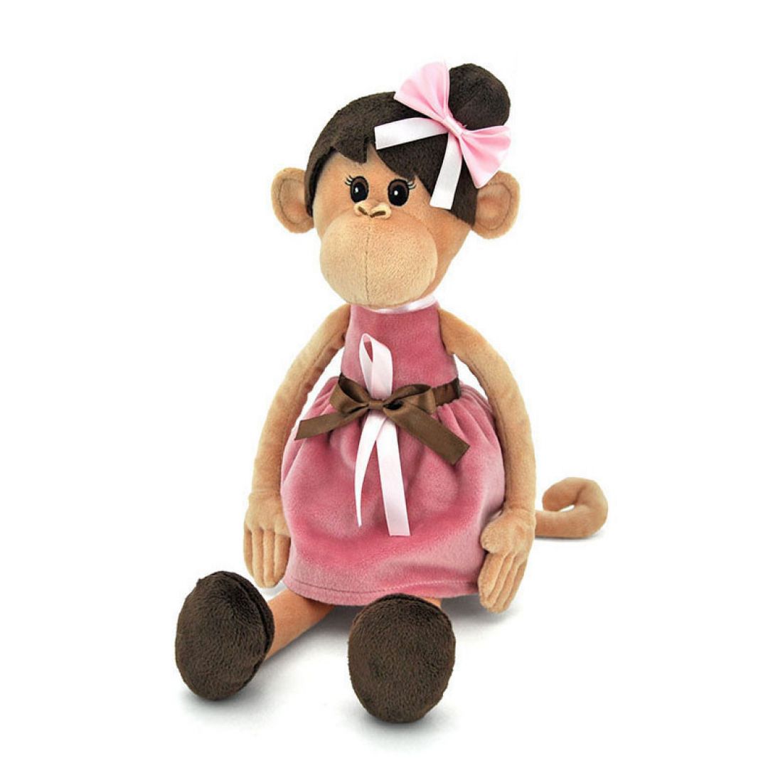 Мавпа Міла в сукні та з зачіскою від бренду Orange - кумедна м'яка іграшка для малюків старше 3-х років.