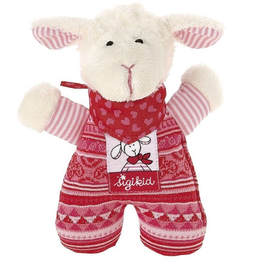 М’якенька плюшева овечка-брязкальце стане улюбленим та вірним другом, з яким так приємно обійматись та засинати перед сном. Іграшка вироблена із напрочуд приємної на дотик мікрофібри рожевих кольорів. Овечка вдягнена в червоний бавовняний костюмчик з візерунками. Немовля залюбки досліджуватиме м’якенькі вуха та лапки. Іграшка абсолютно безпечна для дитини. Рекомендовано дітлахам від народження.