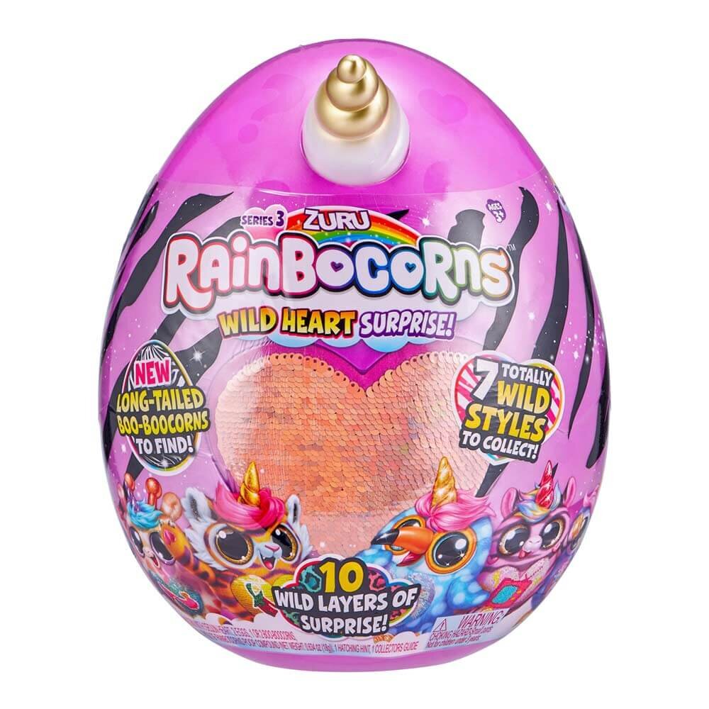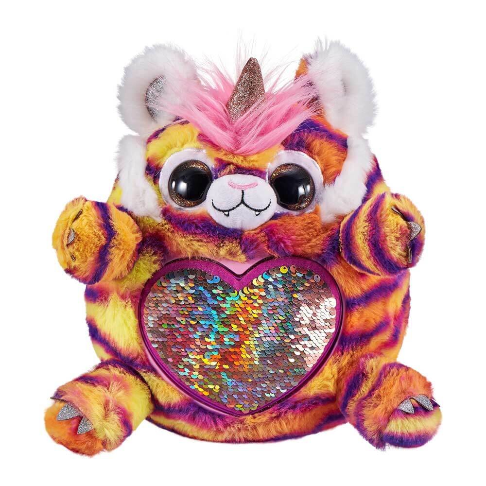 Мягкая игрушка-сюрприз Rainbocorns Wild heart Реинбокорн-G S3 — просто замечательный подарок для маленьких поклонников милых животных и сюрпризов. Игрушка изготовлена из плюша и искусственного меха, глаза — из пластика. На теле животного есть сердце, покрытое пайетками. Погладьте их в одну или другую сторону и увидите, как меняется цвет или изображение.