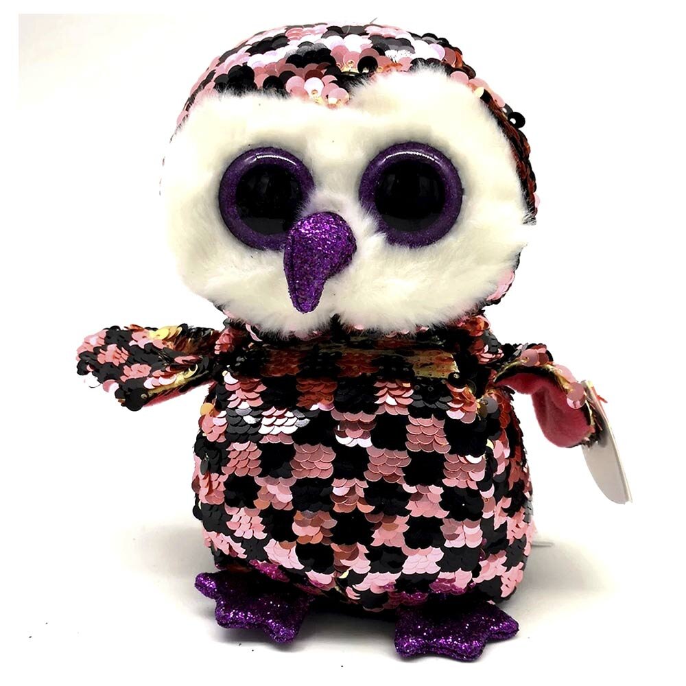 Порадуйте дівчинку модним і красивим вихованцем — совой Чекс від торгової марки TY. М'яка іграшка повністю декорована паєтками, які красиво переливаються в променях світла та можуть змінювати забарвлення птаха.