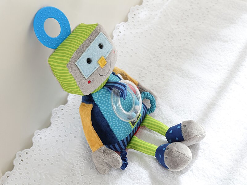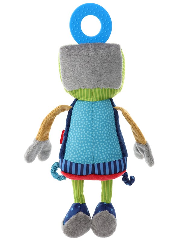 М’яка інтерактивна іграшка у вигляді робота. Іграшка багатофункціональна з безліччю інтерактивних деталей. Це водночас і м’яка іграшка, і прорізувач, і брязкальце. Незвичайний робот серії «Papa and me» бренду sigikid для захопливих ігор.