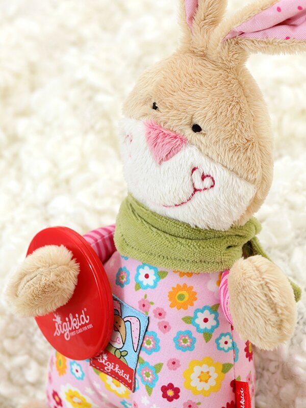 Яскравий кролик Bungee Bunny навіть візуально створює і дарує гарний настрій. А коли потягнути за кільце і запустити музичний механізм, кролик перетвориться на чарівну музичну іграшку, яка супроводжуватиме дитину у країну снів. Кролик дуже приємний на дотик; він слоник стане улюбленою іграшкою дитини. Іграшка заввишки 23 см. Рекомендований вік: з народження.