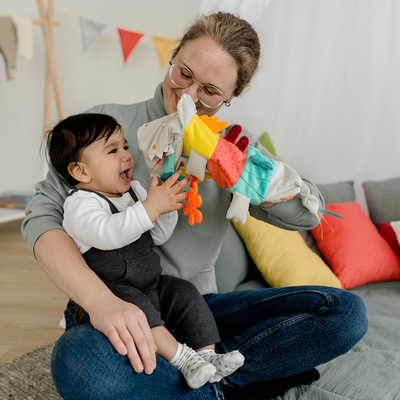Прорізувач Fehn Крокодил - це лялькова рукавичка з брязкальцем, прорузівачами, пищалкою та різними цікавими елементами. Іграшка виконана з м'якого, приємного на дотик матеріалу.
