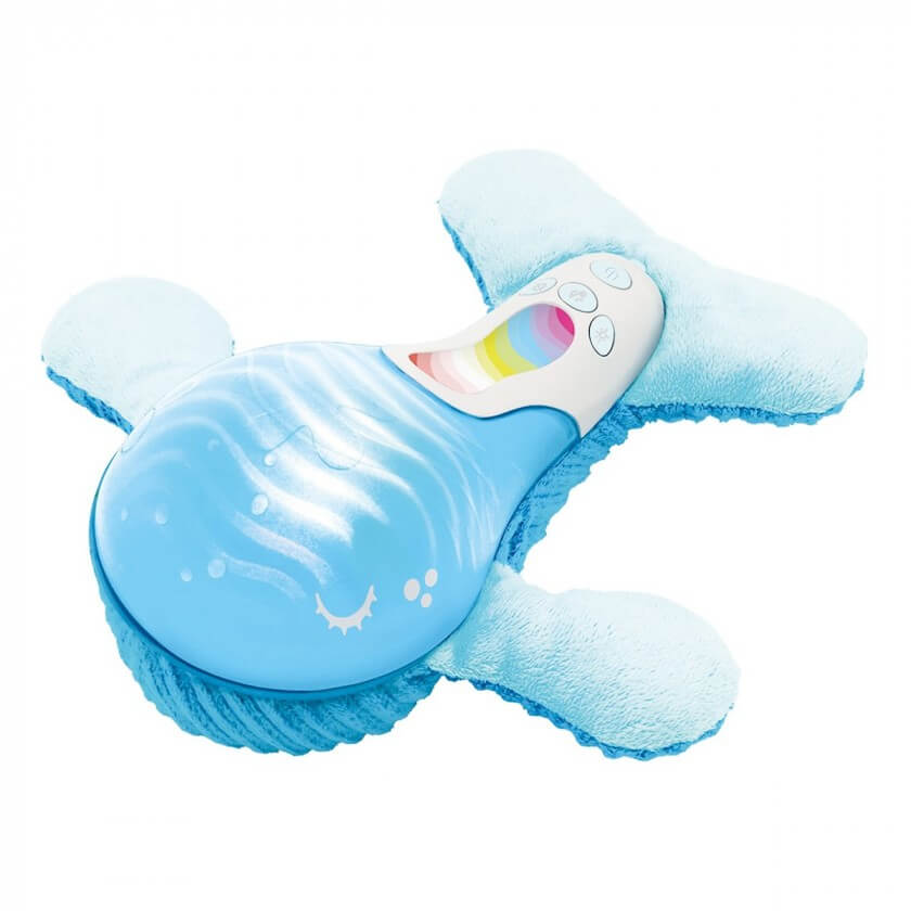 Вибір багатофункціонального нічника виправданий в тих випадках, коли батьки бажають зробити атмосферу дитячої кімнати ще більш затишною і приємною. М'який світильник Infantino Кит відтворює звукові та світлові ефекти, використовуючи живлення від трьох батарейок типу АА (постачаються в комплекті).