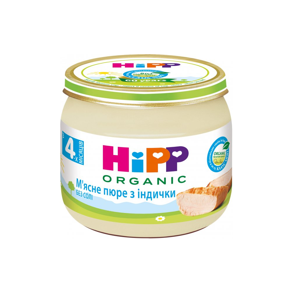 М'ясне пюре HiPP з індички — низькоалергенне, гомогенізоване м'ясне пюре.