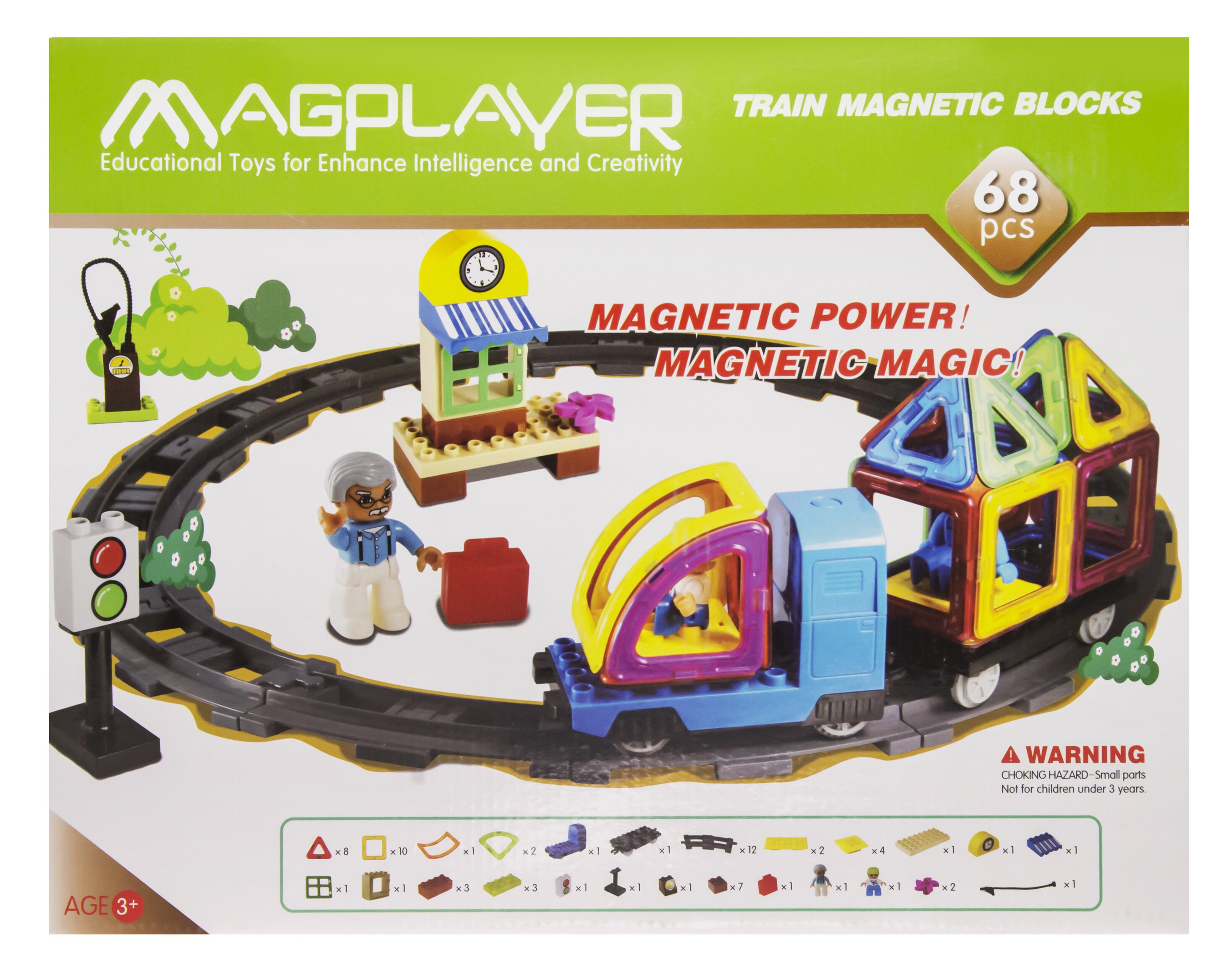 Дуже цікавий набір магнітного конструктора MagPlayer, який дозволить побудувати справжню залізну дорогу, разом з поїздом і невеликим вагоном.