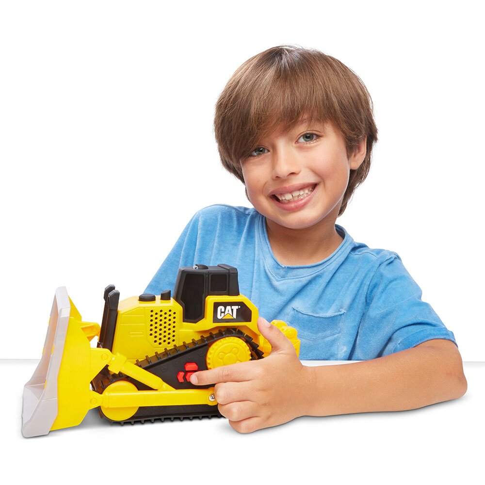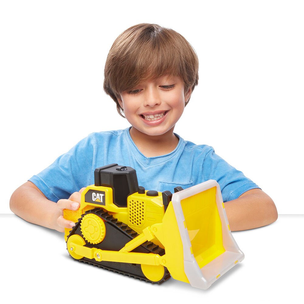 Порадуйте дитину яскравим представником будівельної техніки — барвистим і реалістичним бульдозером від торгової марки CAT. Іграшка оснащена рухомим ковшем, який пересуває пісок та інші дрібні предмети. Робота бульдозера супроводжується різними звуковими та світловими сигналами, що додає грі правдоподібності. Колеса з вільним ходом і рельєфними протекторами легко долають будь-які перешкоди.