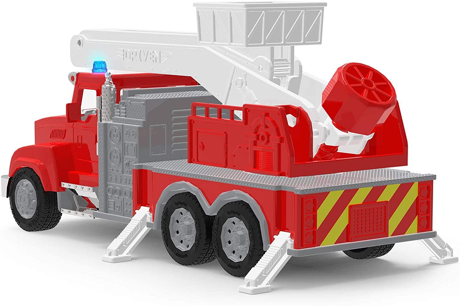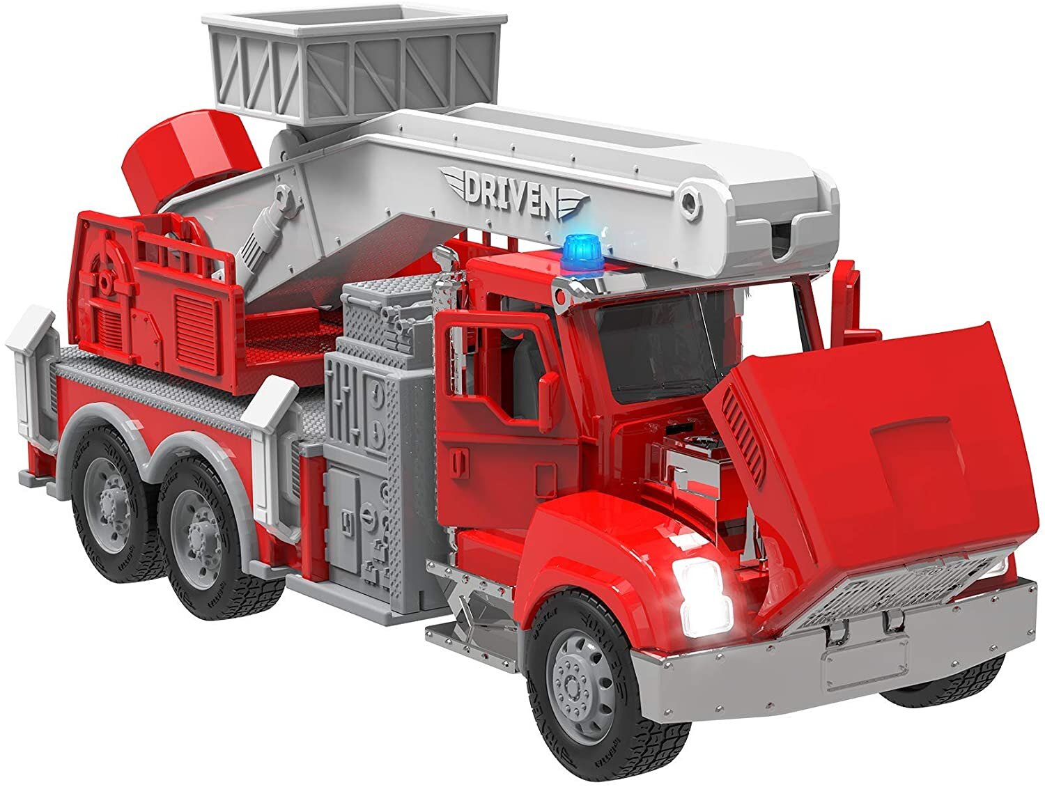 Приєднуйтесь до рятувальної бригади з Пожежною машиною від DRIVEN! Ця іграшкова вантажівка має безліч цікавих функцій, тому так схожа на справжню. Ви можете відкрити двері автомобіля, щоб зазирнути в середину та роздивитись детальний інтер’єр, і натиснути на капот, щоб перевірити двигун. Є висувні сходи з кошиком, щоб дістатися до найвищих місць, і опорні ніжки, які розкладаються для цих надміцних робіт. Вантажівка також має блимаюче синє світло та фари, і навіть видає реалістичний звук сирени! Ця пожежна машина сумісна з іншими іграшками серії DRIVEN Micro. Наші іграшкові вантажівки рекомендуються для маленьких рятувальників віком від 3 років.
