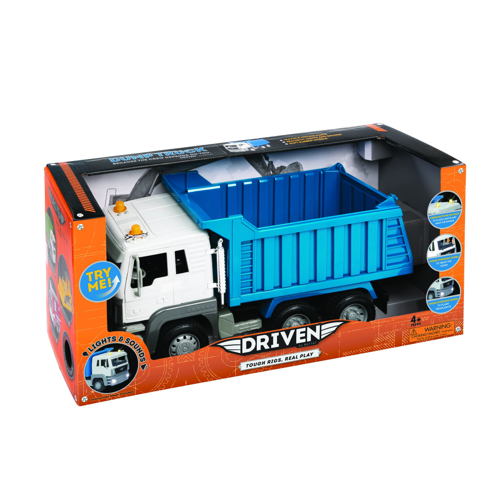 Великий Самоскид від Driven з білою кабіною і синім кузовом стане чудовим подарунком для маленького любителя спецтехніки. Міцність і вантажопідйомність - ось ті якості, завдяки яким ця машина відразу звертає на себе увагу.