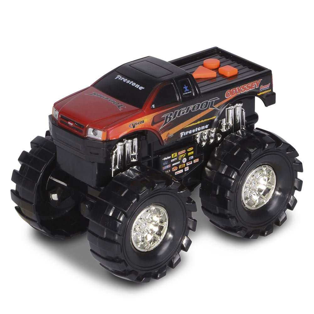 Долайте будь-які перешкоди, перемагайте суперників, будьте першими разом з машинкою Монстр трак Big Foot від Toy State. Величезні колеса, червоно-чорне розфарбування і гострий погляд - ви будете не переможемо. За допомогою кнопки, активізується багато функцій. Звукові і світлові сигнали, щоб все не тільки бачили, а й чули - їде король доріг. Моторизований привід допоможе весело урізноманітнити ігровий процес, зробити гру цікавою і захоплюючою.