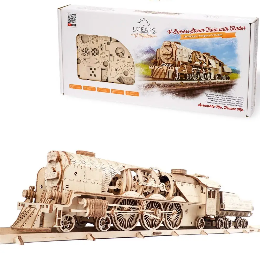 Складаючи «Локомотив з тендером V-Експрес» від Ugears, ви відчуєте себе конструктором-першовідкривачем, який вперше відчуває магію насиченого деталями механізму, що оживає в ваших руках. Поїзд - це завжди подорож. Ugears обіцяє, що з новою моделлю локомотива, вам не доведеться нудьгувати в дорозі!