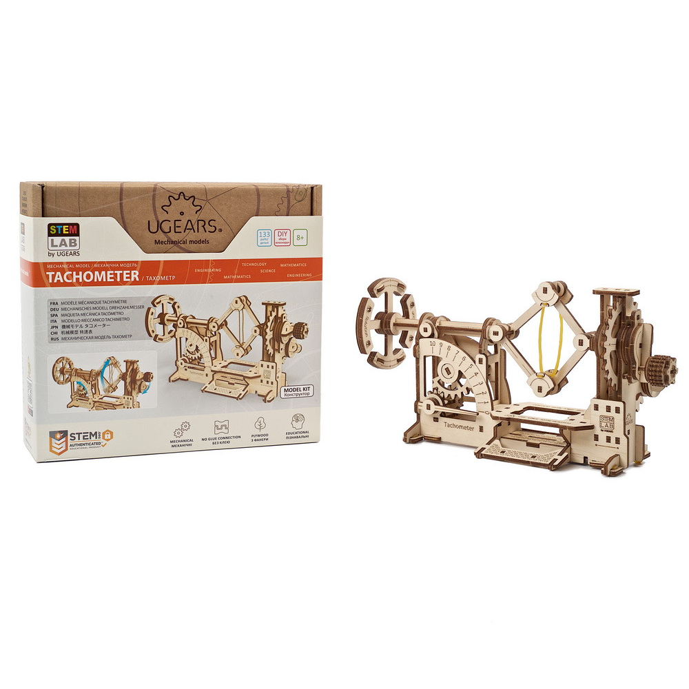 Механічний тривимірний пазл Тахометр із колекції Ugears STEM lab неодмінно сподобається підліткам та дорослим, що люблять майструвати. Це пристрій, призначений для вимірювання частоти обертання різних деталей в машинах і механізмах. Він обчислює кількість оборотів на хвилину. Тахометр також допомагає вимірювати та контролювати навантаження, вчасно знижувати або підвищувати обороти.