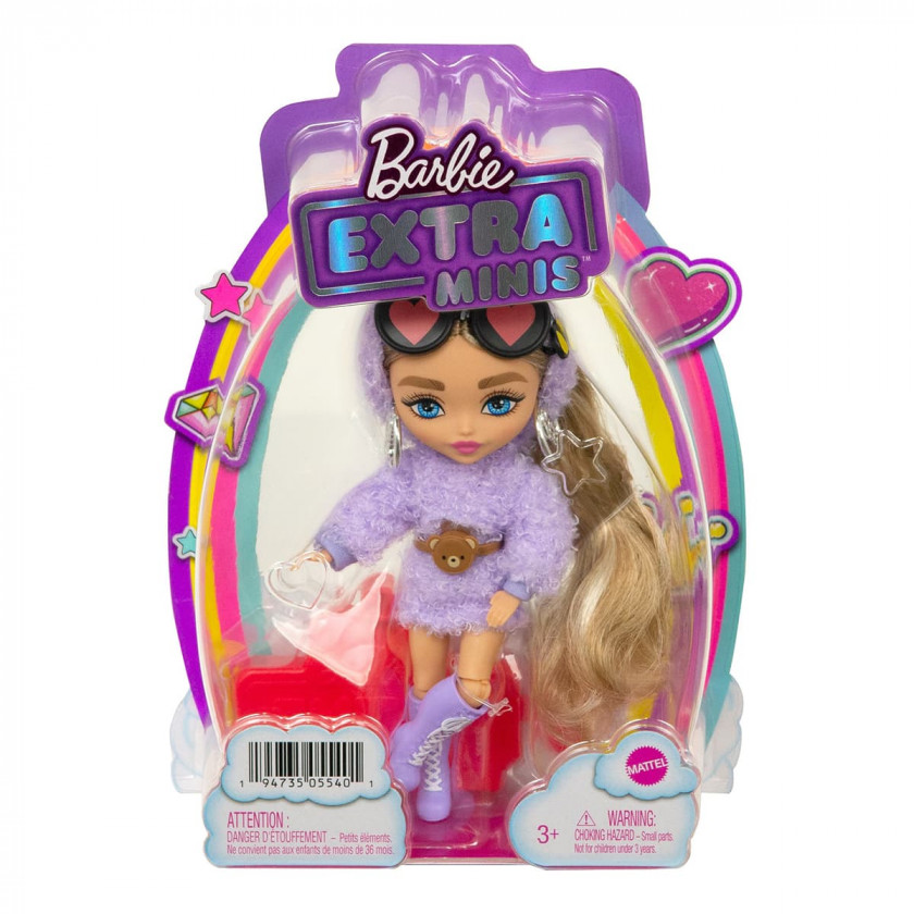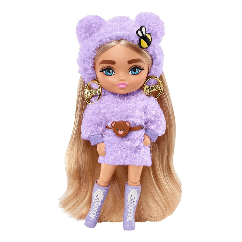 Зустрічайте екстрамаленьких лялечок – Barbie Extra Minis. Вони такі ж стильні, як і класичні Barbie Extra, але мініатюрні. Ці маленькі красуні мають яскраве яскраве волосся, грайливі образи і модні аксесуари. Ці маленькі леді вражають з першого погляду! Міні-лялька Barbie Extra Ніжна леді 14 см – надзвичайно яскрава та мила лялечка. Вона одягнена в пухнасту фіолетову сукню з капюшоном і модне високе взуття на шнурках такого ж кольору. Аксесуари надають образу яскравості та підкреслюють її екстравиключність! У лялечки в наборі також є круті сережки з написом "Queen" і сонячні окуляри з сердечками, а поясна сумочка-ведмежа вдало підкреслює талію красуні. Довге світле волосся дозволяє сміливо експериментувати із зачіскою ляльки.