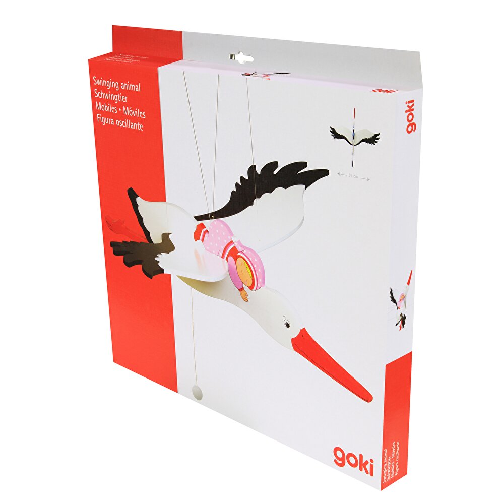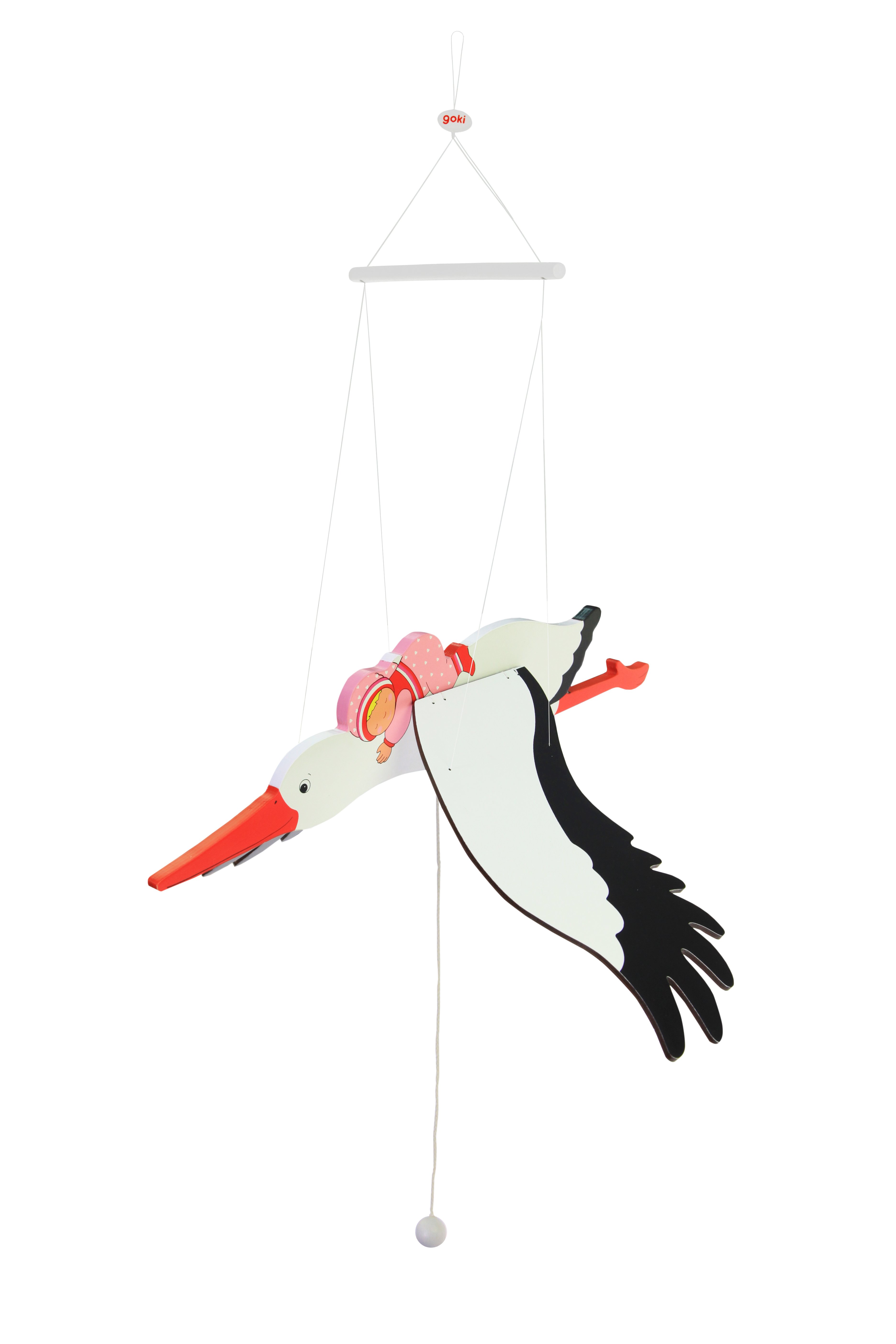 Дерев’яний мобайл «Лелека з дівчинкою» німецького виробника іграшок goki оберігатиме сон малюка та звеселятиме його після пробудження.