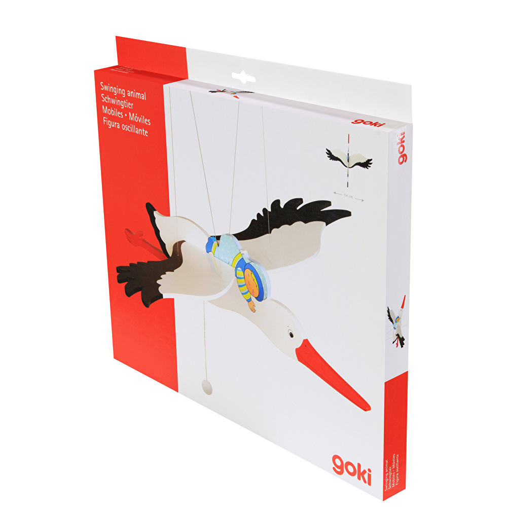 Дерев’яний мобайл «Лелека з хлопчиком» німецького виробника іграшок goki оберігатиме сон малюка та звеселятиме його після пробудження.