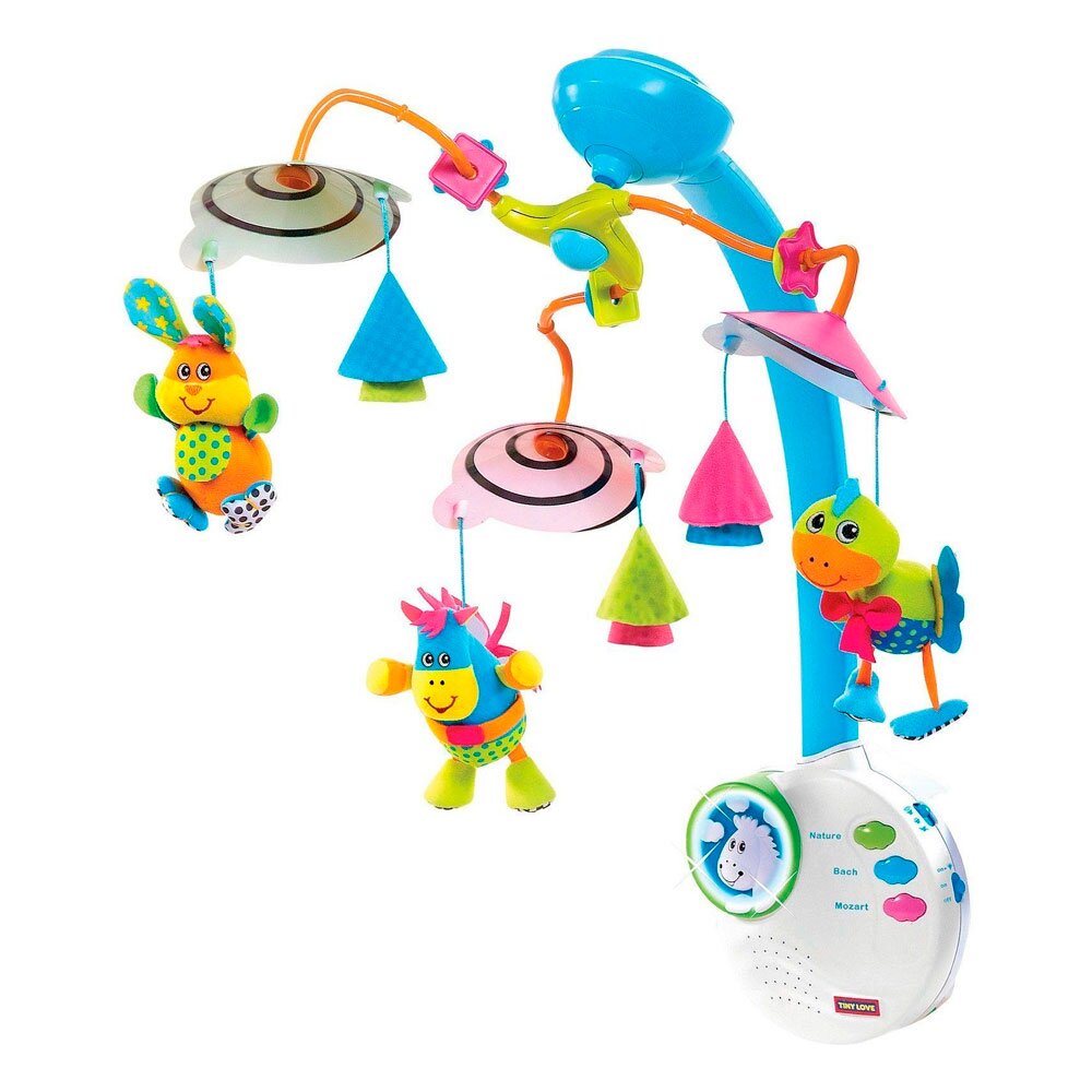 Іграшки знімаються, їх можна замінювати й прати, а коли дитина підросте - зможе окремо грати м'якими іграшками цього чудового мобіля. У підставці мобіля кріпиться музичний пристрій з вмонтованим нічником, що має м'яке заспокійливе підсвічування.