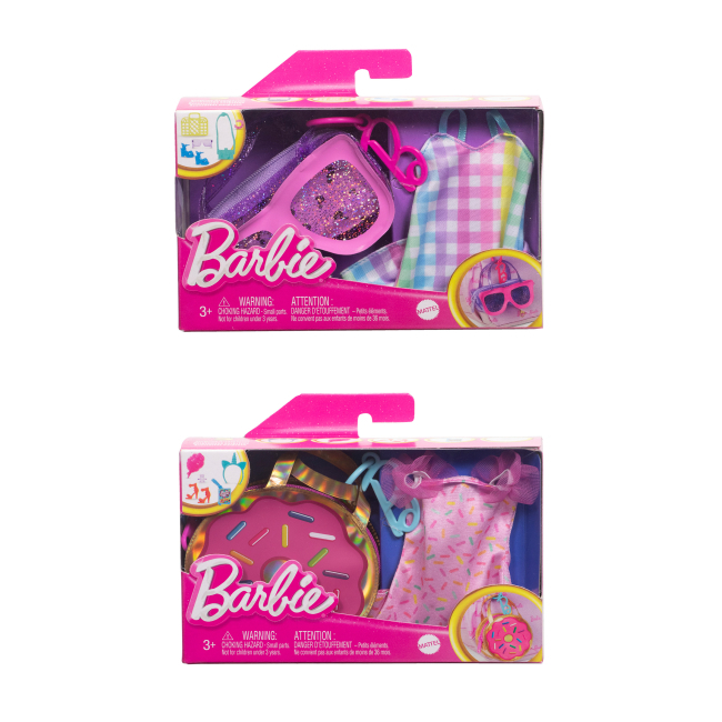 • Що може бути краще за нове вбрання та аксесуари для лялечки Barbie? Звичайно, стильна сумочка, в якій все це можна зберігати! Ці набори представлені в асортименті, і ви можете обрати будь-який на власний смак. Всередині кожного ви знайдете велику та неймовірно гарну сумочку, один предмет вбрання та п'ять тематичних аксесуарів, що ідеально поєднуються.