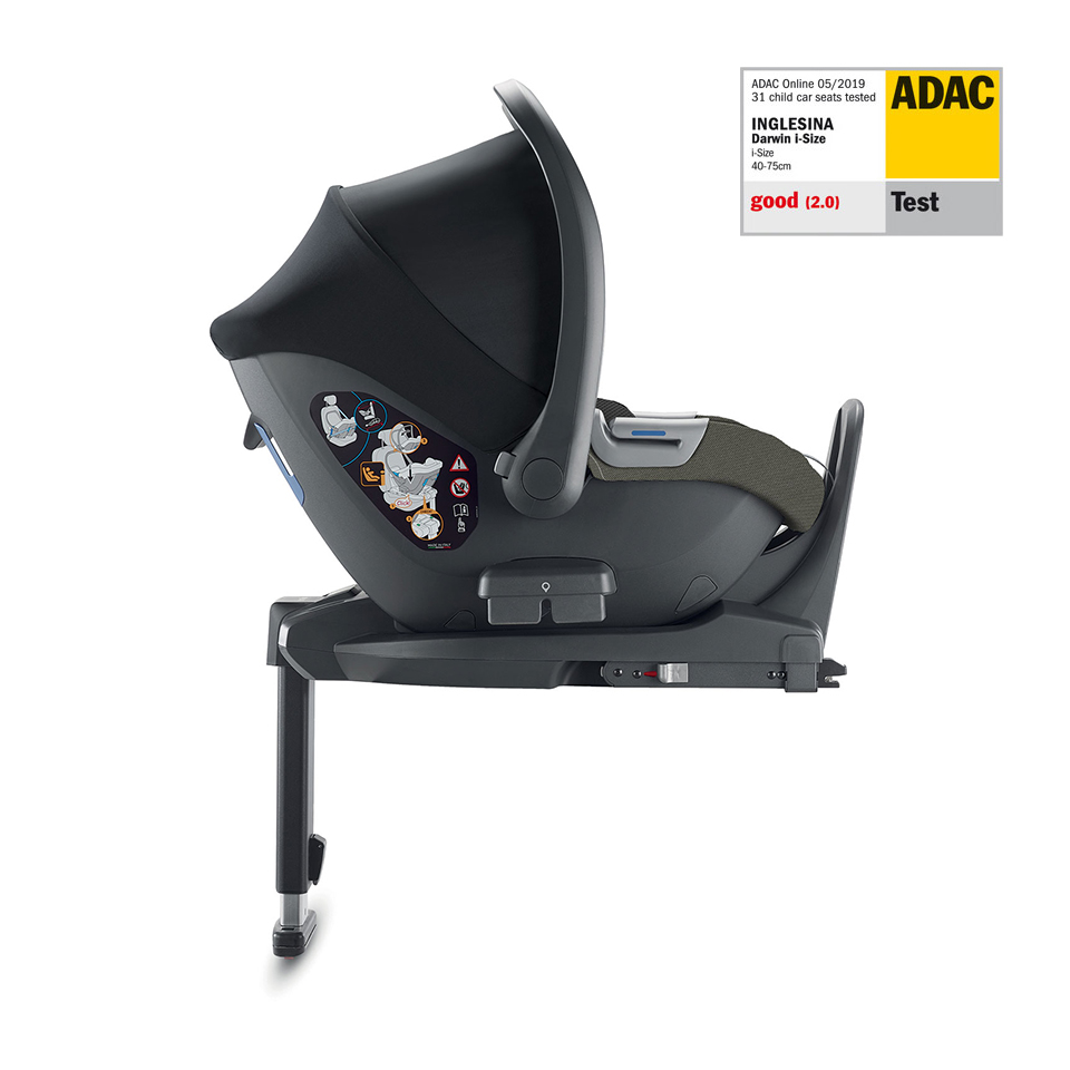 Автокрісло Darwin. Нагороджене у тестах безпеки. Darwin i-Size отримало високу оцінку в провідних європейських і споживчих тестах безпеки, таких як ADAC. Найкраща ергономіка у своїй категорії. Легко та безпечно встановити. База i-Size гарантує надійне та швидке кріплення сидіння та запобігає ризику неправильної установки крісла в автомобілі. Узголів'я регулюється по висоті за допомогою централізованого керування та інтегрується в ремені безпеки, щоб адаптуватися до росту вашої дитини. Ергономічна форма, великі розміри та кут нахилу роблять його надзвичайно комфортним для малюка, який навіть у перші місяці життя збереже правильну поставу завдяки подушечці-редуктору з м'якої лайкри.