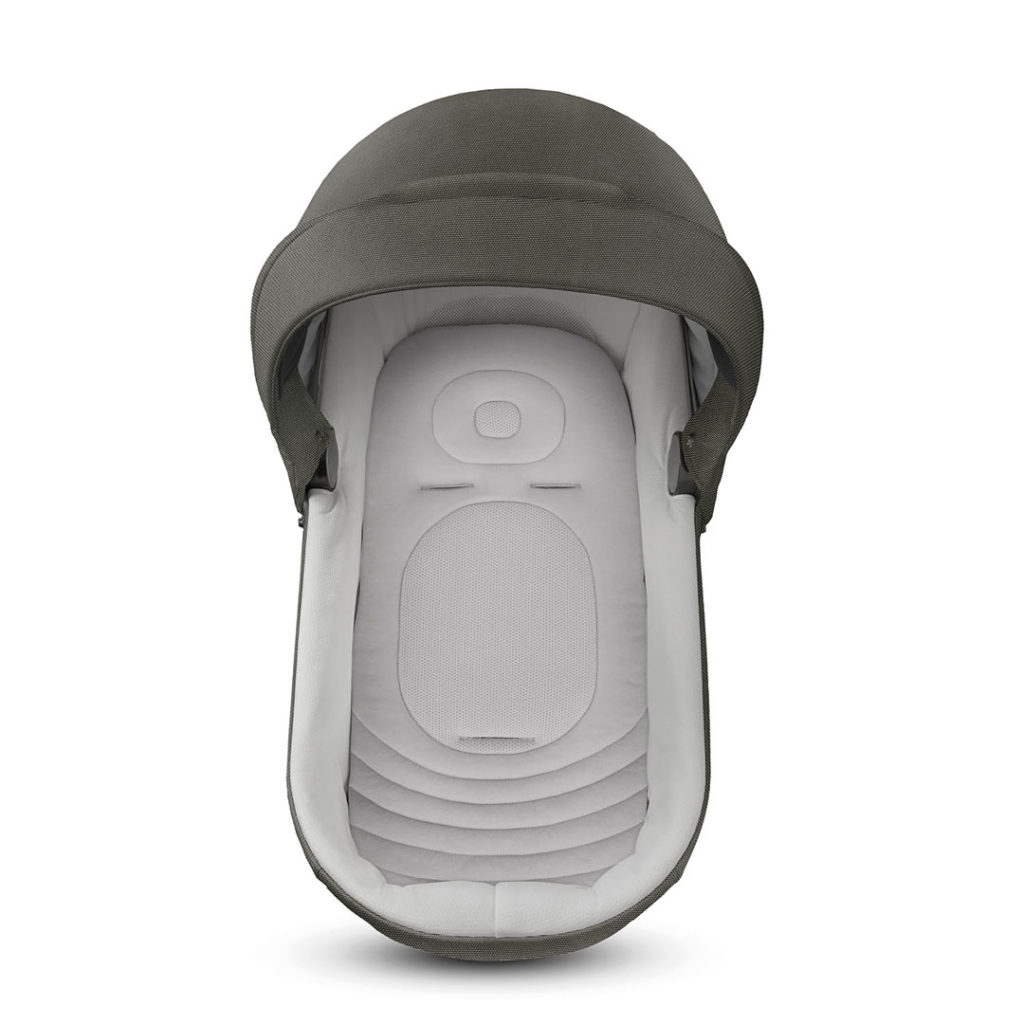Люлька. Неймовірно простора. Для правильного фізіологічного розвитку новонародженого важливо якомога довше гарантувати йому лежаче і горизонтальне положення. Завдяки великим внутрішнім розмірам (79 х 37 см) він може комфортно лежати протягом щонайменше 6 місяців, навіть якщо його загорнути в зимовий мішок або одягнути в комбінезон з підкладкою. Капюшон захищає від УФ-променів, а передня панель допомагає, коли сонця мало. Повне покриття гарантує максимальний захист навіть у положенні лежачи. Сітчаста вставка на капюшоні сприяє циркуляції повітря всередині підтримує прохолоду та вентиляцію. Водонепроникні деталі. Оснащена спеціальними водонепроникними блискавками для будь-яких погодних умов. М'який і м'який чохол на ніжки можна легко прикріпити.