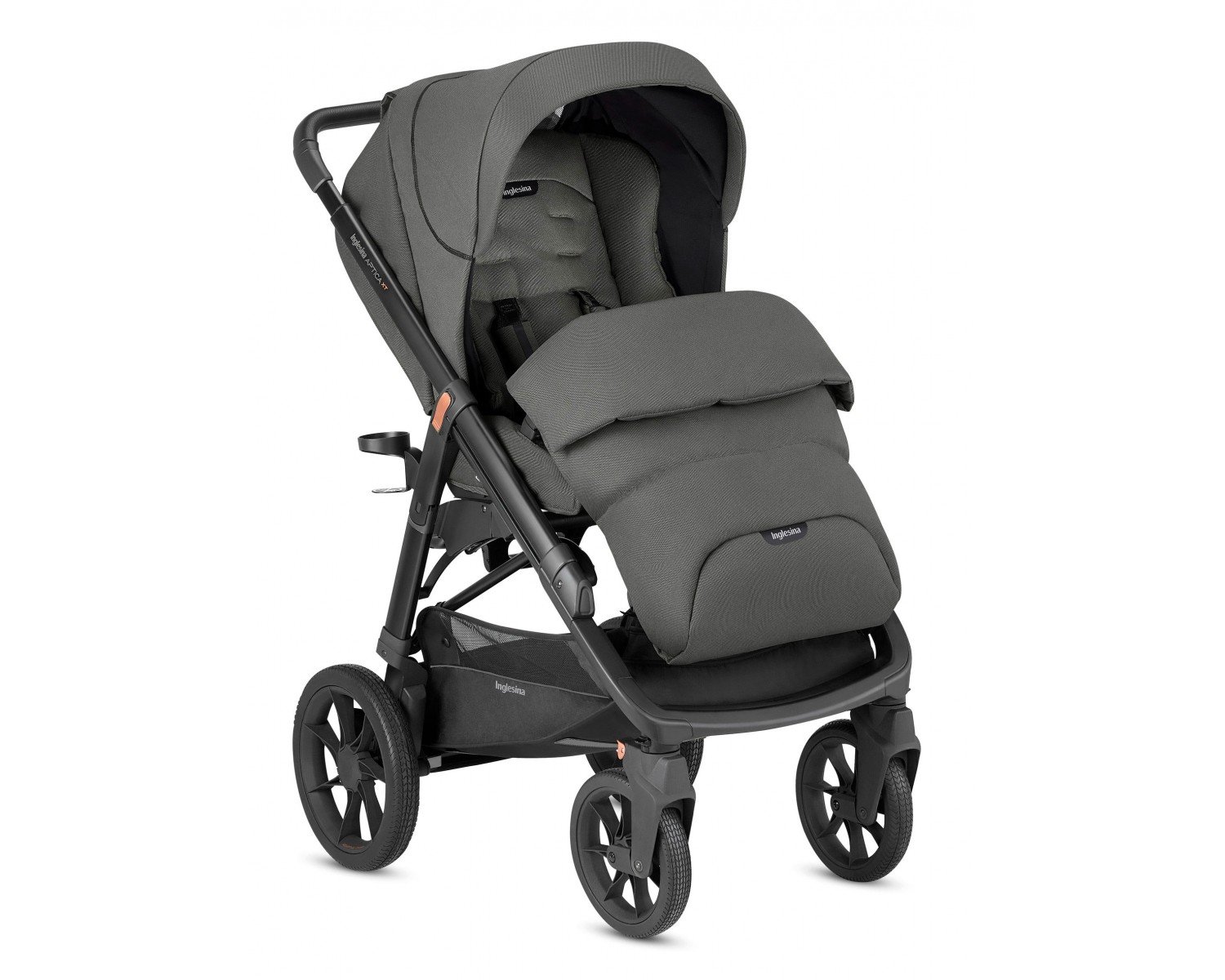 Прогулянковий блок. Прогулянковий блок Inglesina Aptica XT має реверсивне сидіння. Спинка та підніжка наводиться у горизонтальне положення. Коляска розкладається і складається однією рукою разом із шасі. Капюшон виконаний із захисної тканини (UPF50+) та оснащений додатковим сонцезахисним козирком, який можна прибирати, коли він не використовується. Вставка з "сітки, що дихає" в капюшоні дозволяє посилити циркуляцію повітря навколо сидіння прогулянкового блоку.