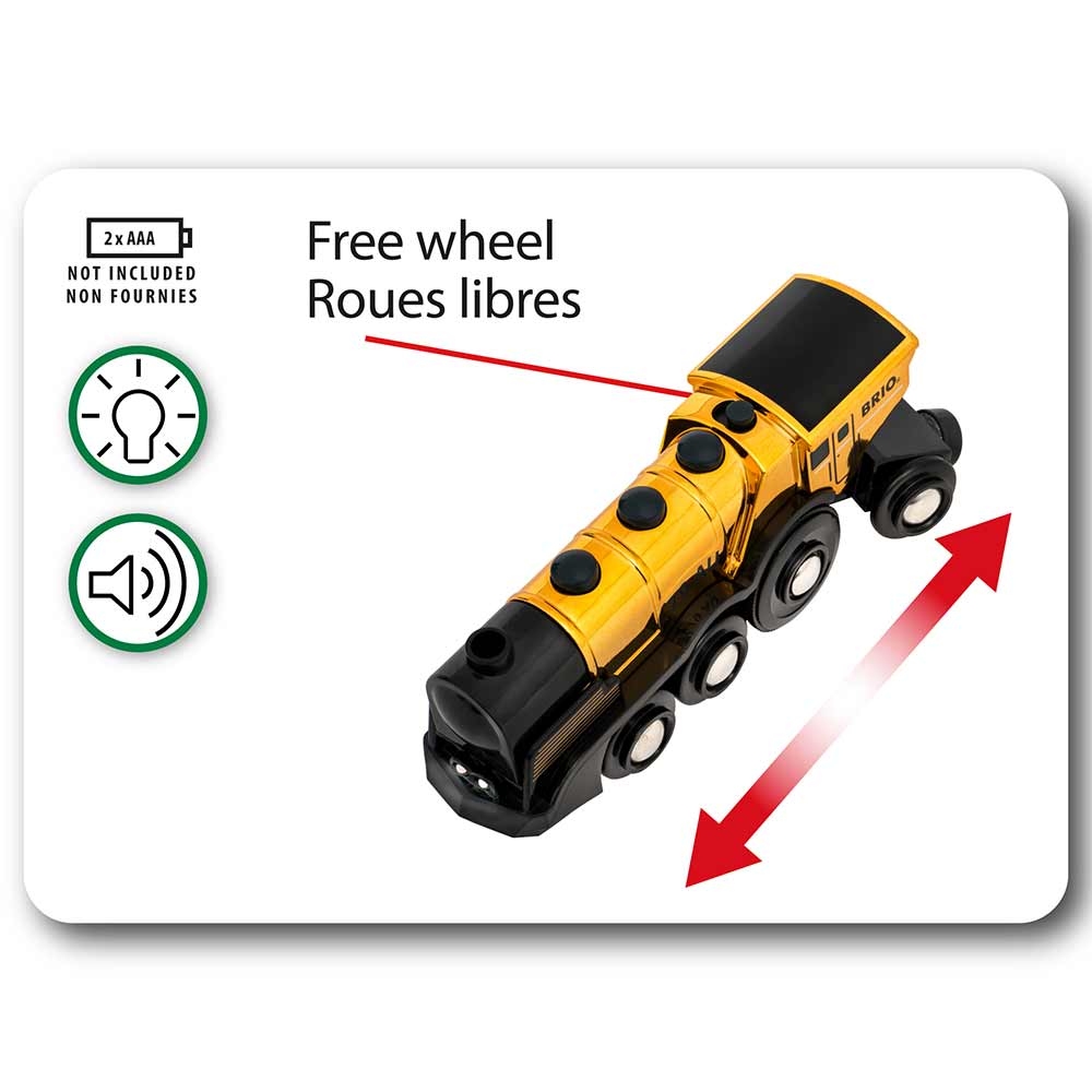 автоматичний локомотив у «золотому» корпусі з функціями руху вперед/назад/стоп, режимом ручного керування, світлом та звуком